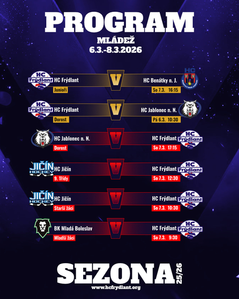 Výsledky mládežnických kategorií HC Frýdlant z víkendu 27. únor - 1. březen 2026